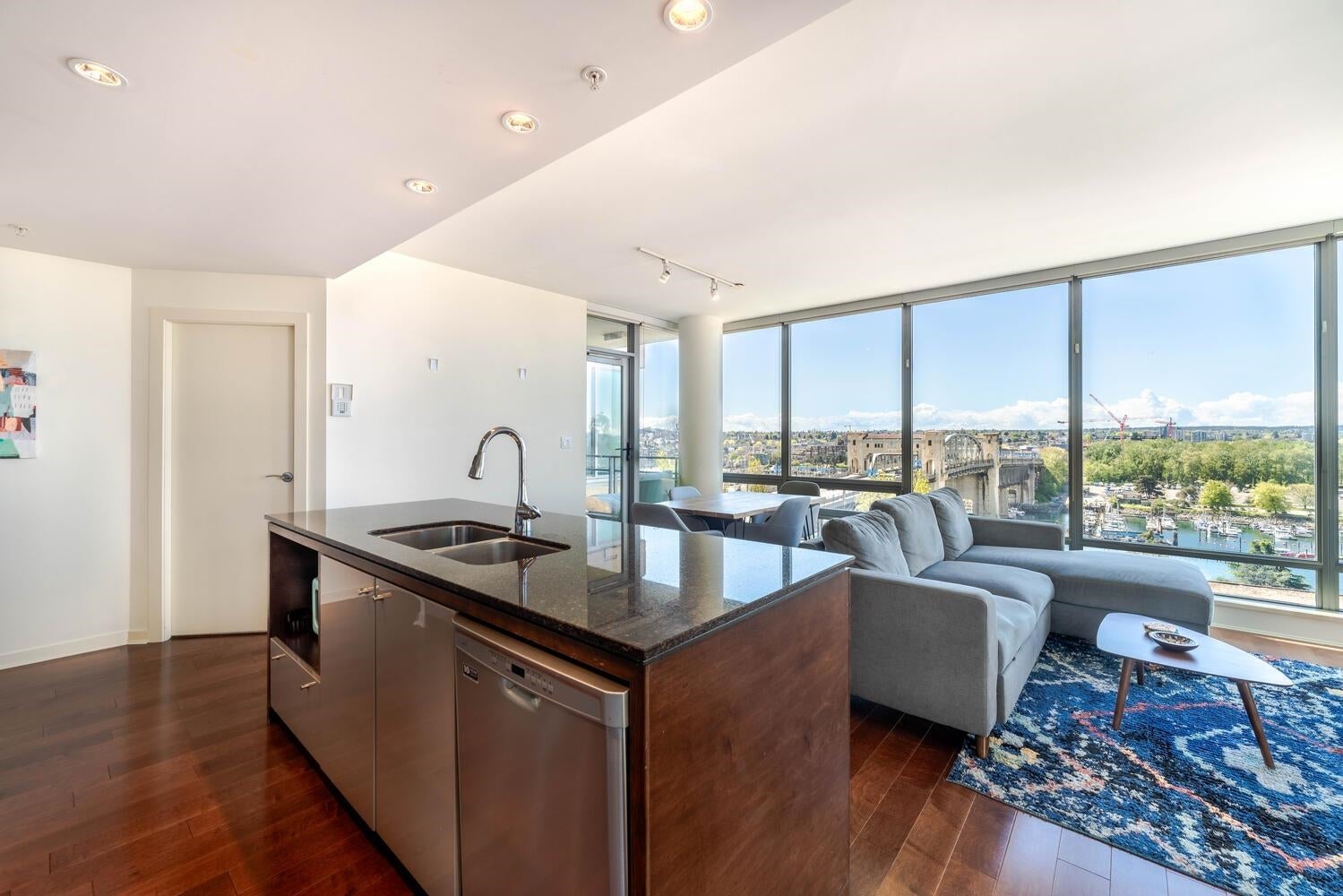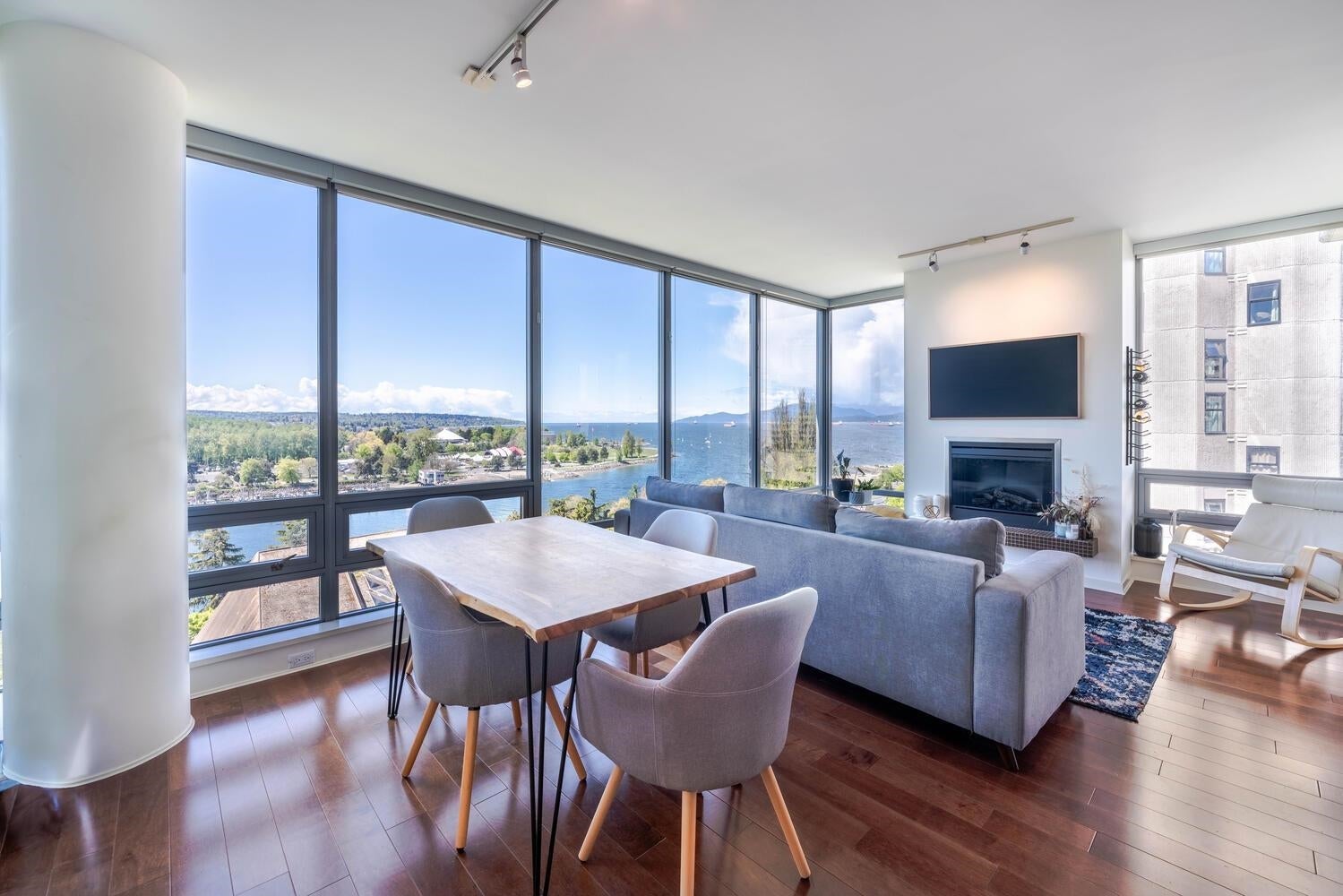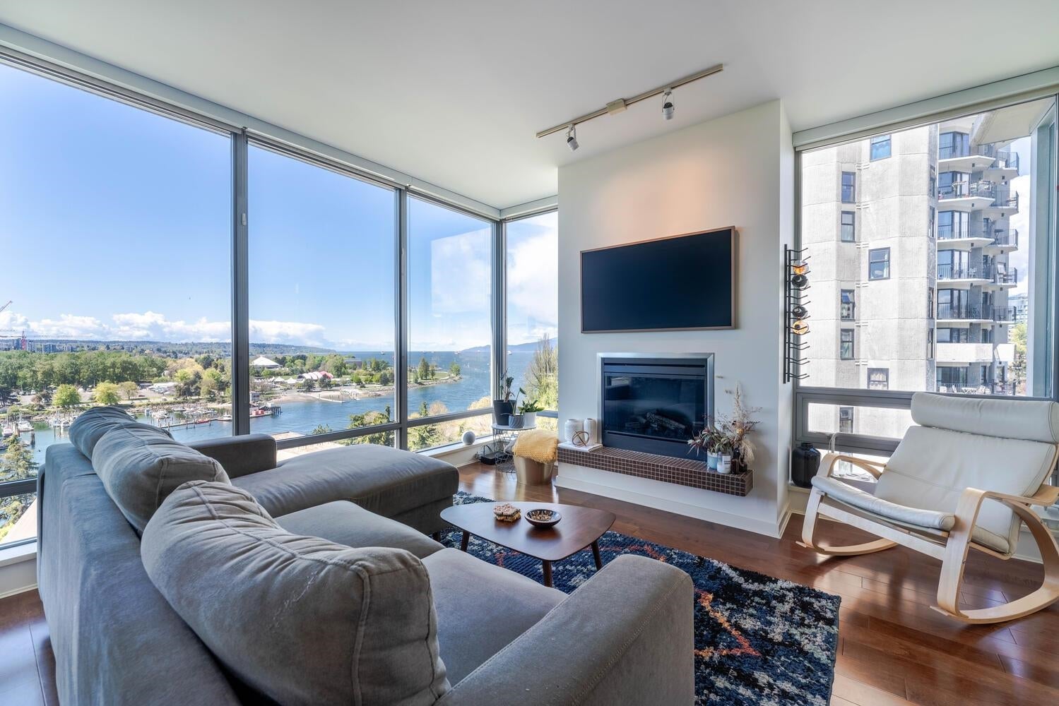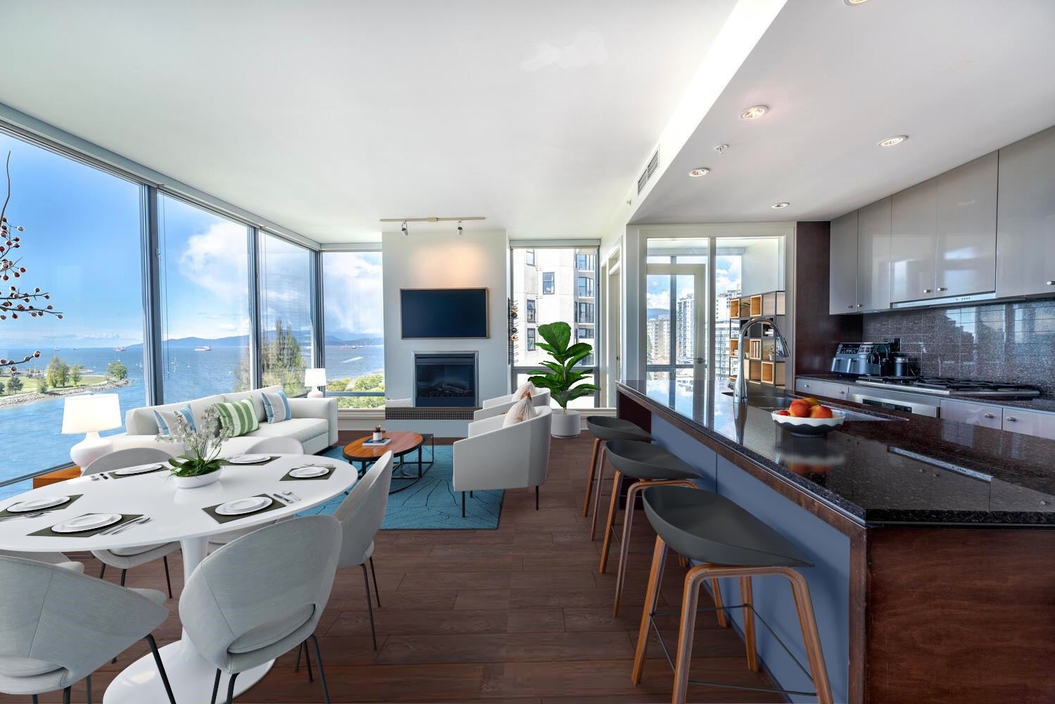BREATHTAKING OCEAN & SUNSET VIEWS. PRIME, SUNSET BEACH LOCATION. Welcome to the esteemed "ALVAR." This special 2 bed + 2 bath home with AC offers the (RARELY AVAILABLE) luxurious, 03 floor plan, maximizing spectacular ocean views from all generous & comfortable principal rooms. The KING-SIZE primary bedroom is a quiet retreat...wake up to birds chirping!! Enjoy the large covered balcony, year round-relax & watch watercraft glide by. Plus lounge, fitness ctr & secure parking inc. Vancouver's aquatic centre, the sea wall, beach, aqua bus, gourmet restaurants, shopping & parks are steps away. This highly coveted resort-like stretch of Beach Ave. provides singular vehicle traffic & a designated bike lane for peaceful living. Pet friendly complex. EV ready pkg. TICKS ALL THE BOXES -A MUST SEE!