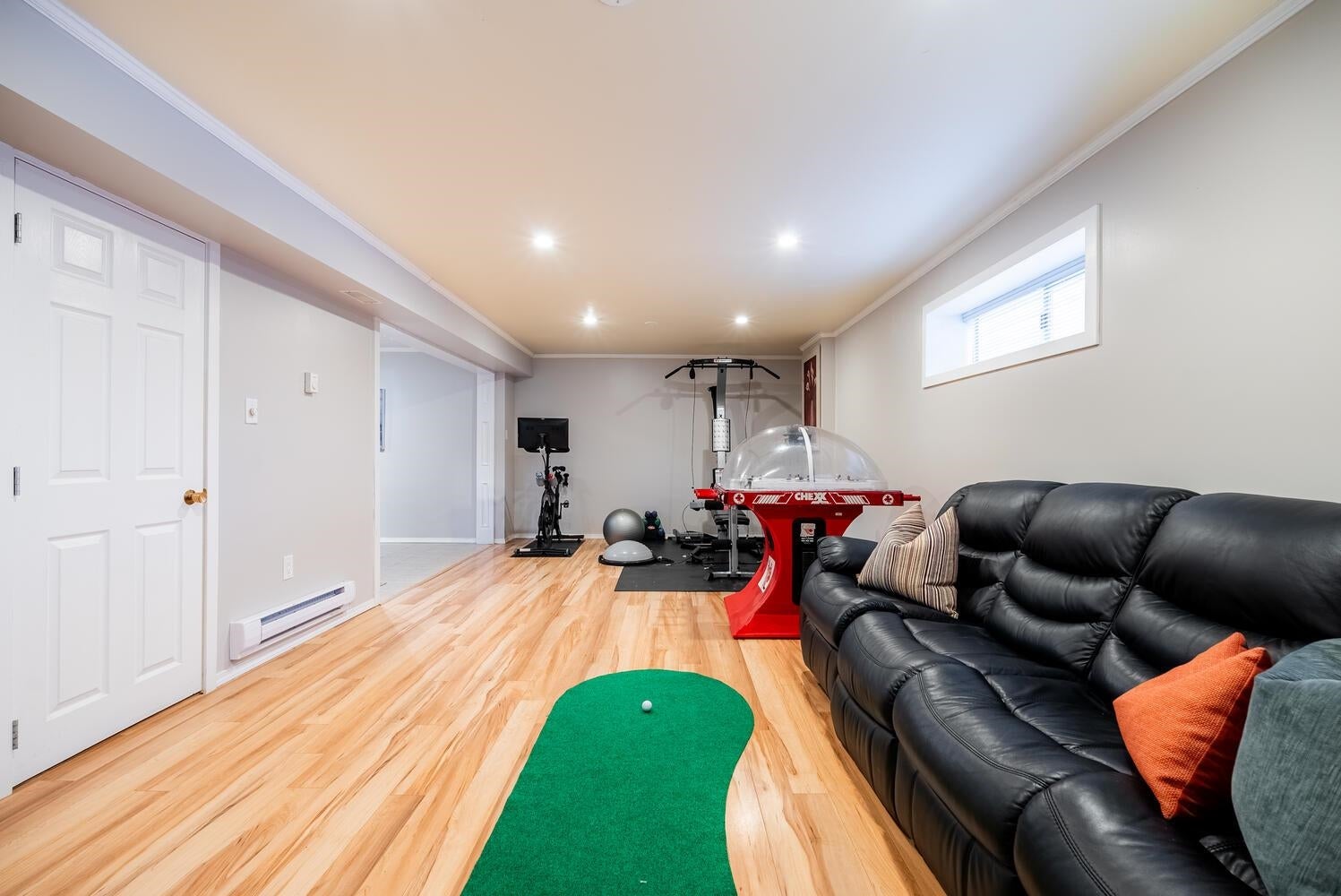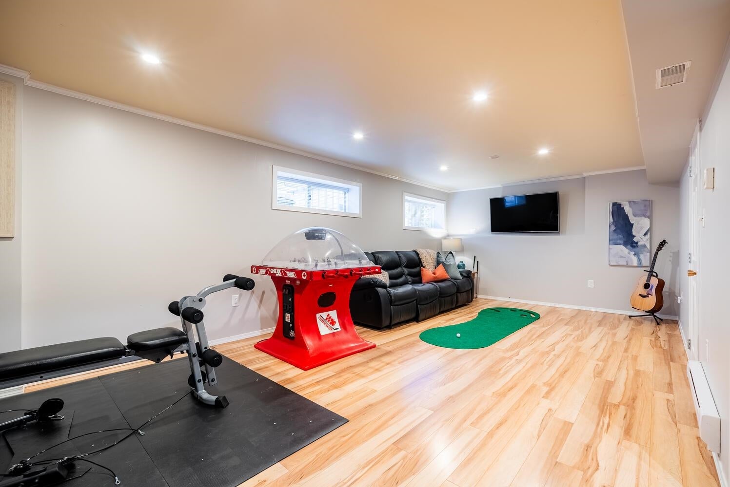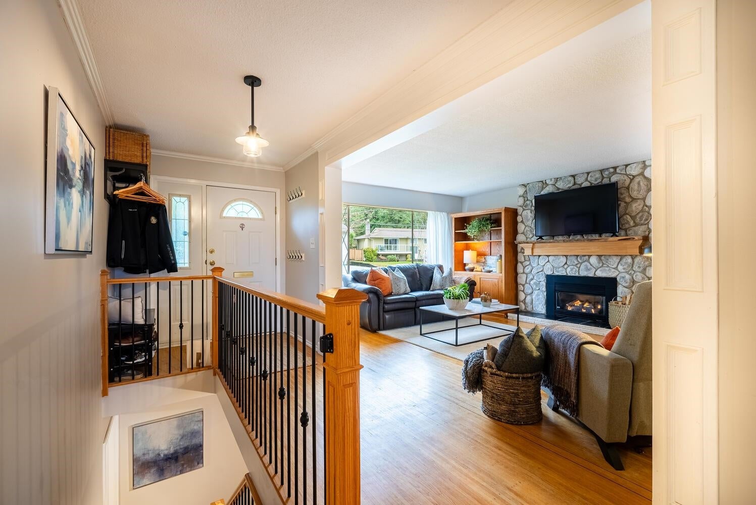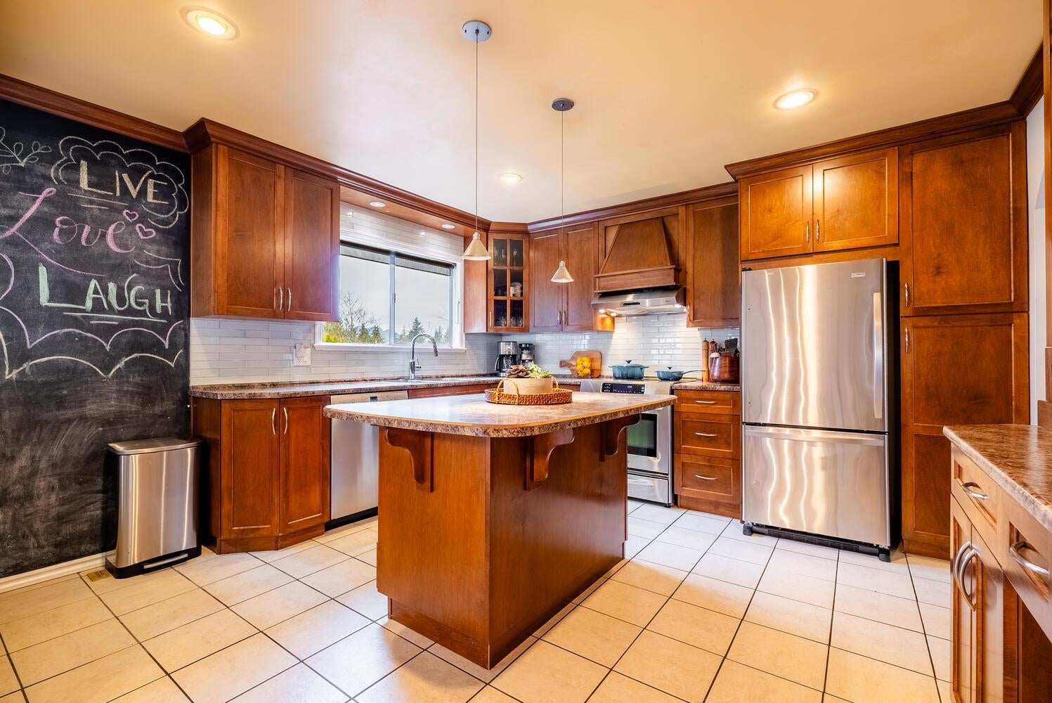 "Whistler inspired" family home on a large, level, lot in a highly sought after area surrounded by large new homes! You won't feel you need to take a holiday here! Bright, fully fenced, "kid's dream" backyard complete with deck, patio, firepit area w/underground wiring, putting area, raised garden beds ++ Walk inside & you are greeted by a gorgeous floor to ceiling river rock, gas fp with a live edge mantle, OAK hardwood floors throughout the main floor, large updated kitchen w/island & large window & deck overlooking the backyard. 3 good size bdrms on the main with a 4th bdrm down. High ceilings down with rec room, gym, laundry and mud room. Walking distance to top schools inc. Dr. Charles Best. Excellent shopping & parks a lovely, stroll away. Open Sun 2-4 pm Hurry! Priced to sell!