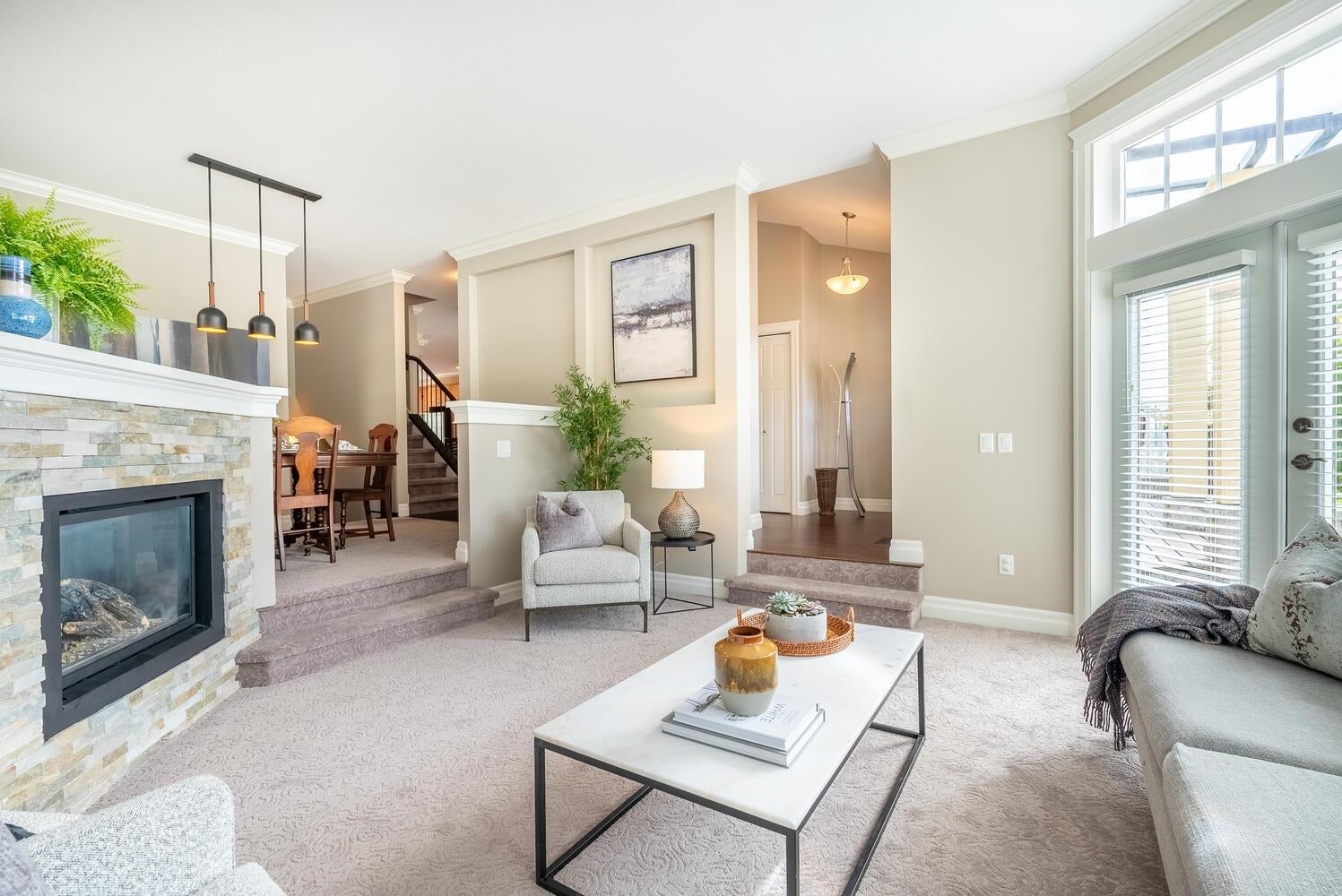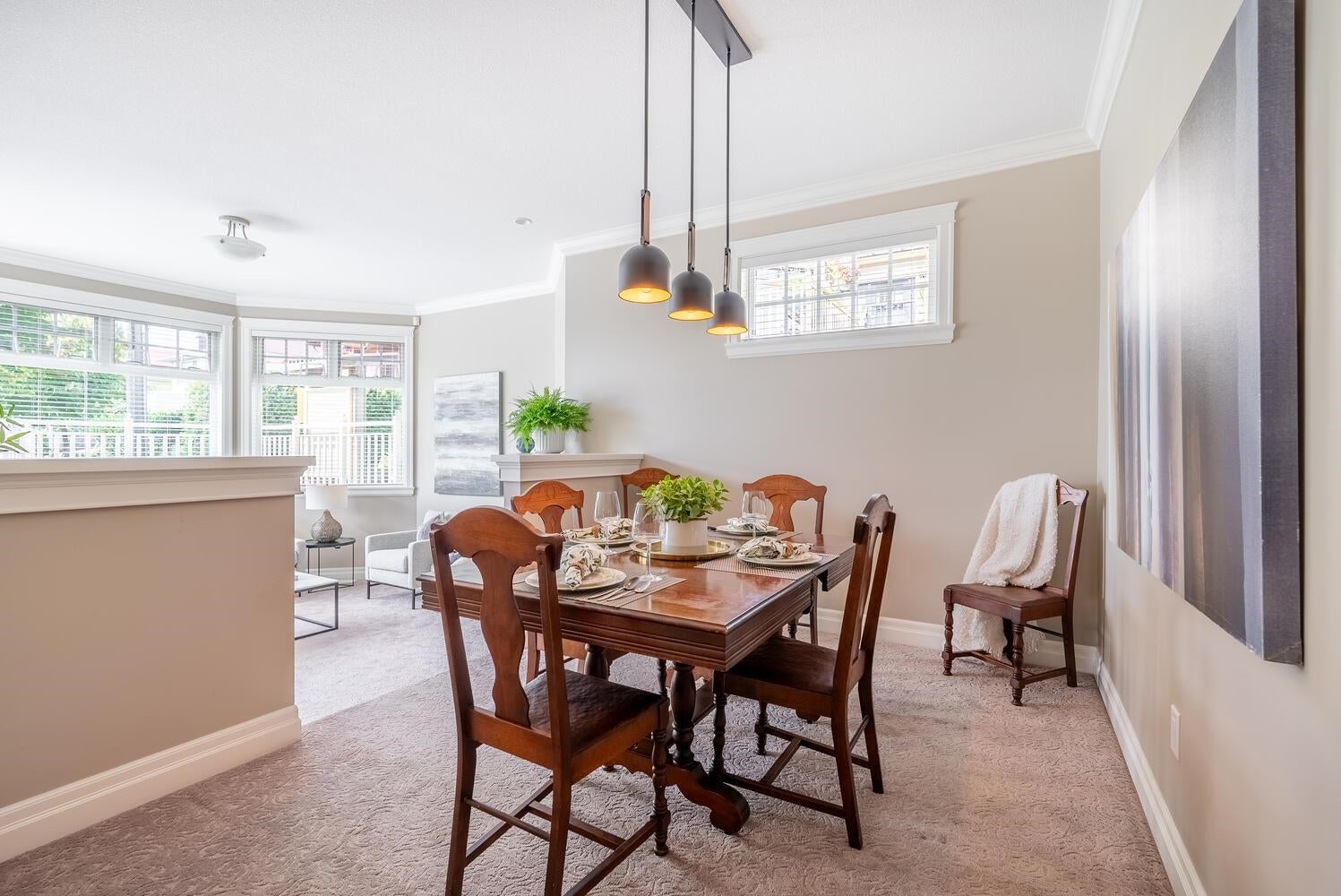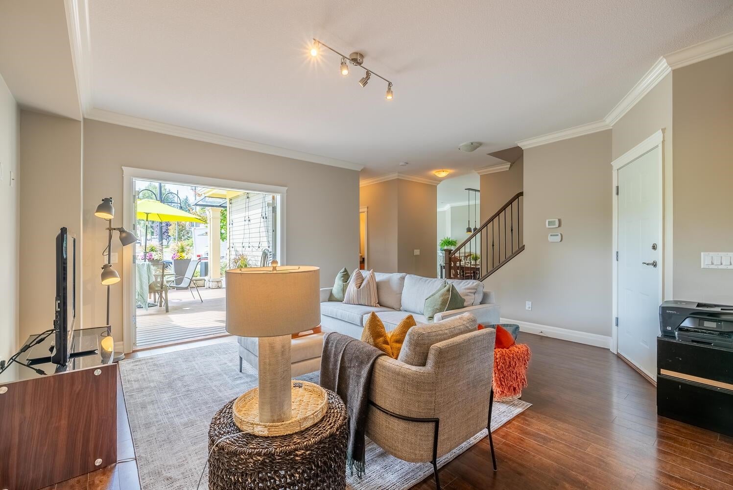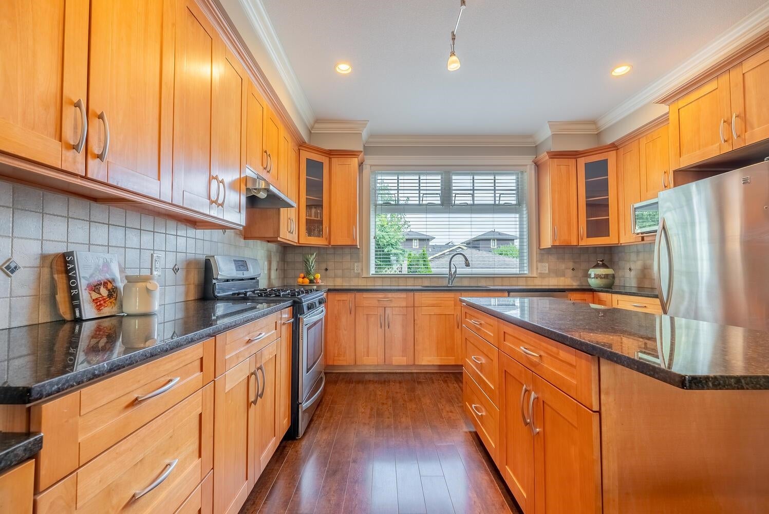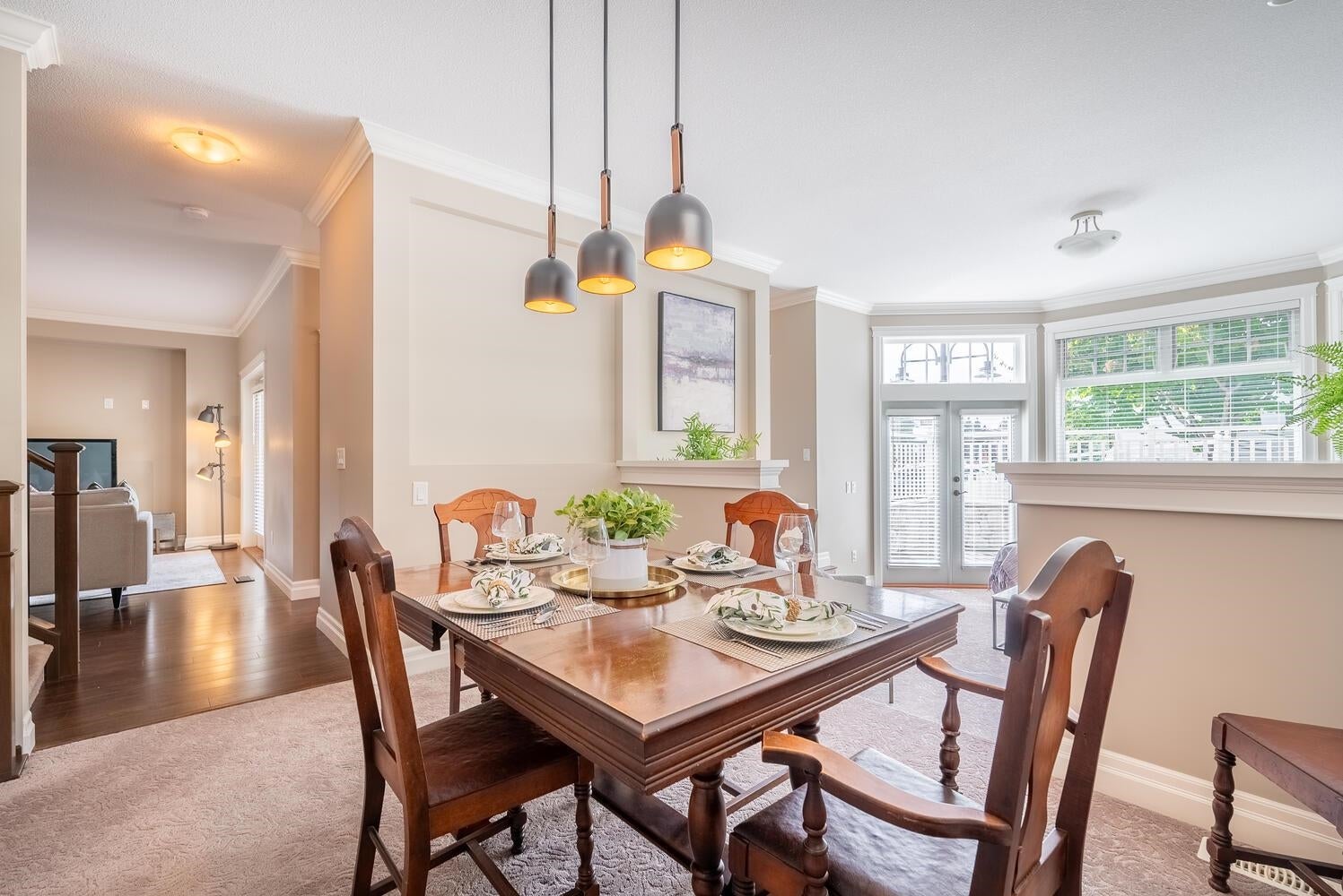 PEEK-A-BOO Fraser River Views from this stunning 3 bdrm, 4 bath, end unit, family home with vaulted ceilings & over 3009 sq. ft.! A well built, 8 unit, newer, Heritage Style Townhome is part of the revered, Bedard House Heritage complex in a sought after area! Features inc. enormous, well appointed kitchen, shaker cabinets with pull out pantries, island, eating area, cozy family room leading to an inviting patio/deck, partly covered -year-round BBQ, living room with vaulted ceilings & fp leading to a charming patio/deck, adjacent, formal, dining room is steps to the family/kitchen area; all bdrms up have vaulted ceilings, primary with ensuite & private balcony, down media room, office or games room & oversized rec room. Storage galore! An amazing opportunity! Open Sat 2-4 pm or by appt.
