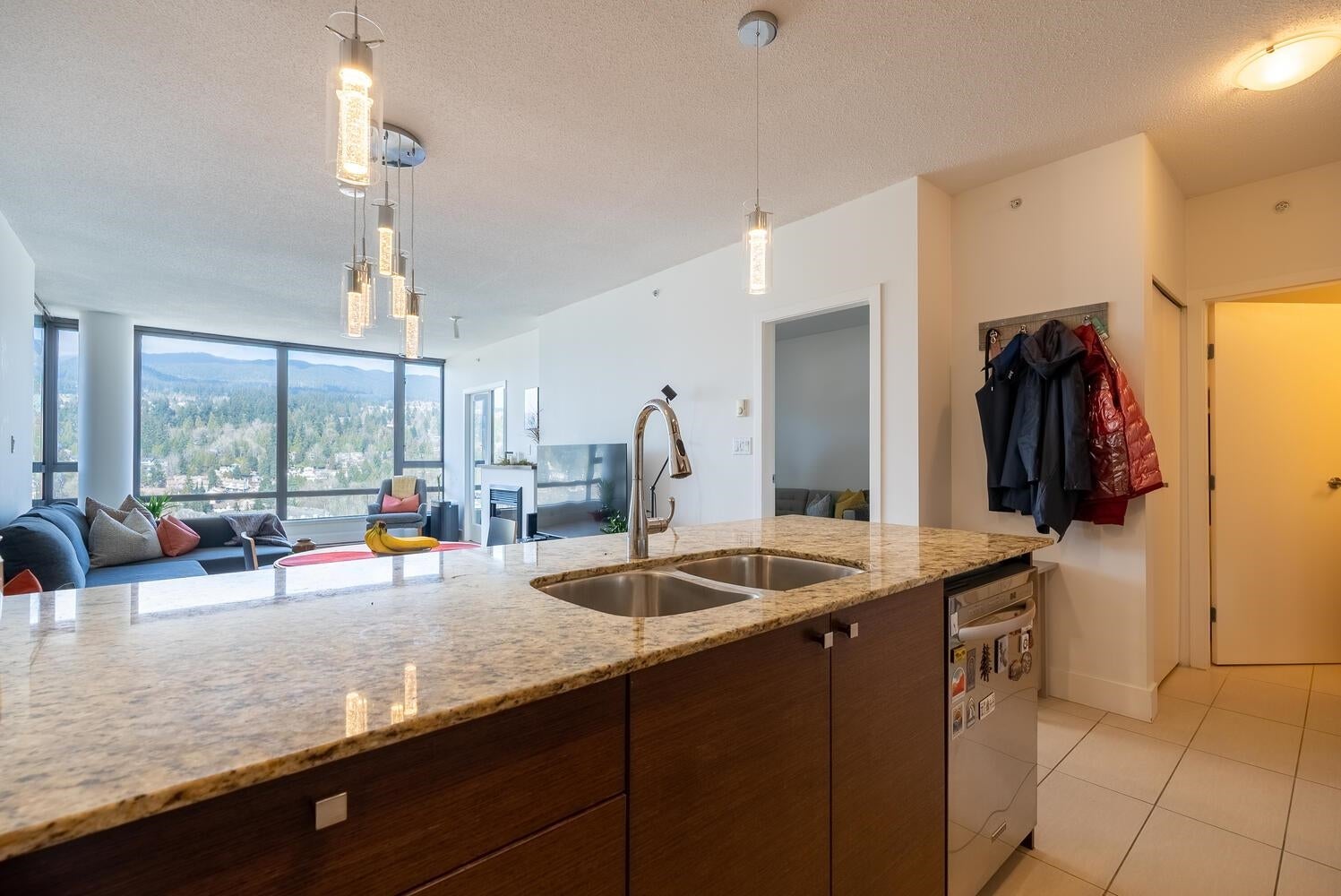 AMAZING WATER & MOUNTAIN VIEWS.This spacious 2 bdrm & 2 bath suite in the AWARD-WINING ARIA 1 is nestled within popular Suter Brook Village & offers an OUTSTANDING OPPORTUNITY! Elegantly appointed with wide-plank engineered hardwood flooring throughout, full-size SS appliances incl. gas range/stove, granite countertops & high ceilings. The intelligent floorplan offers wonderful flexibility. The large covered & protected balcony is ideal for entertaining + BBQ.Incl. 1 pkg stall + 1 storage locker + tons of visitor parking. Benefit from an amazing Health Club incl. massive gym,indoor pool + swirl pool,sauna,squash courts & more!.Steps to Sky Train, West Coast Express, groceries,restaurants,coffee shops+++ Wonderful Tenants who would love to stay! OPEN HOUSE- GOOD FRIDAY: April 7th 2-4 PM