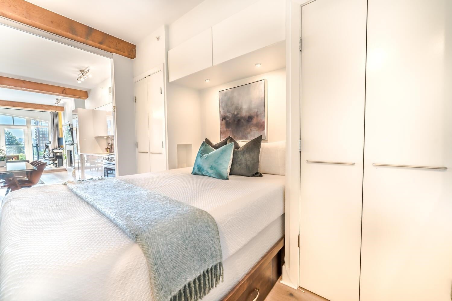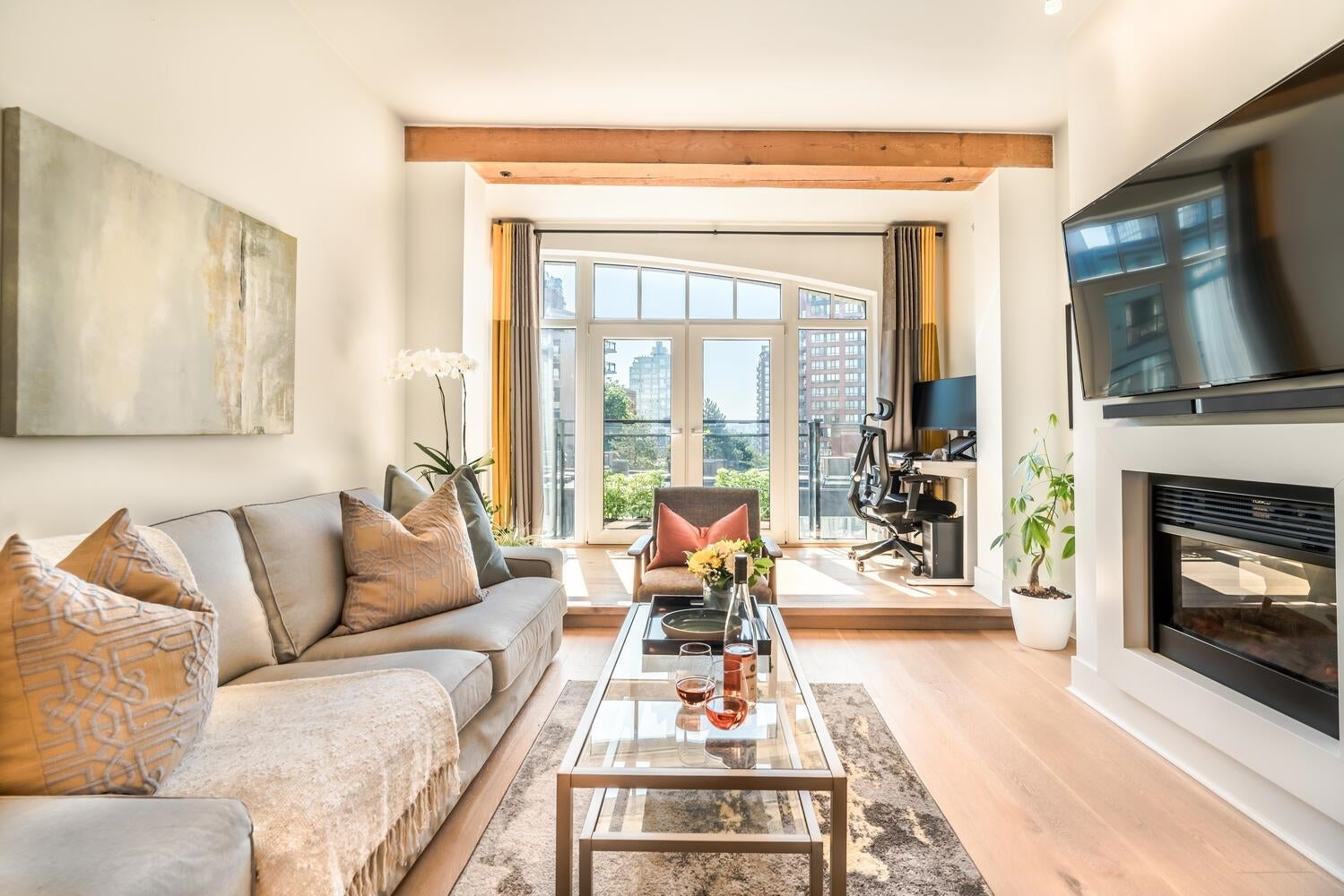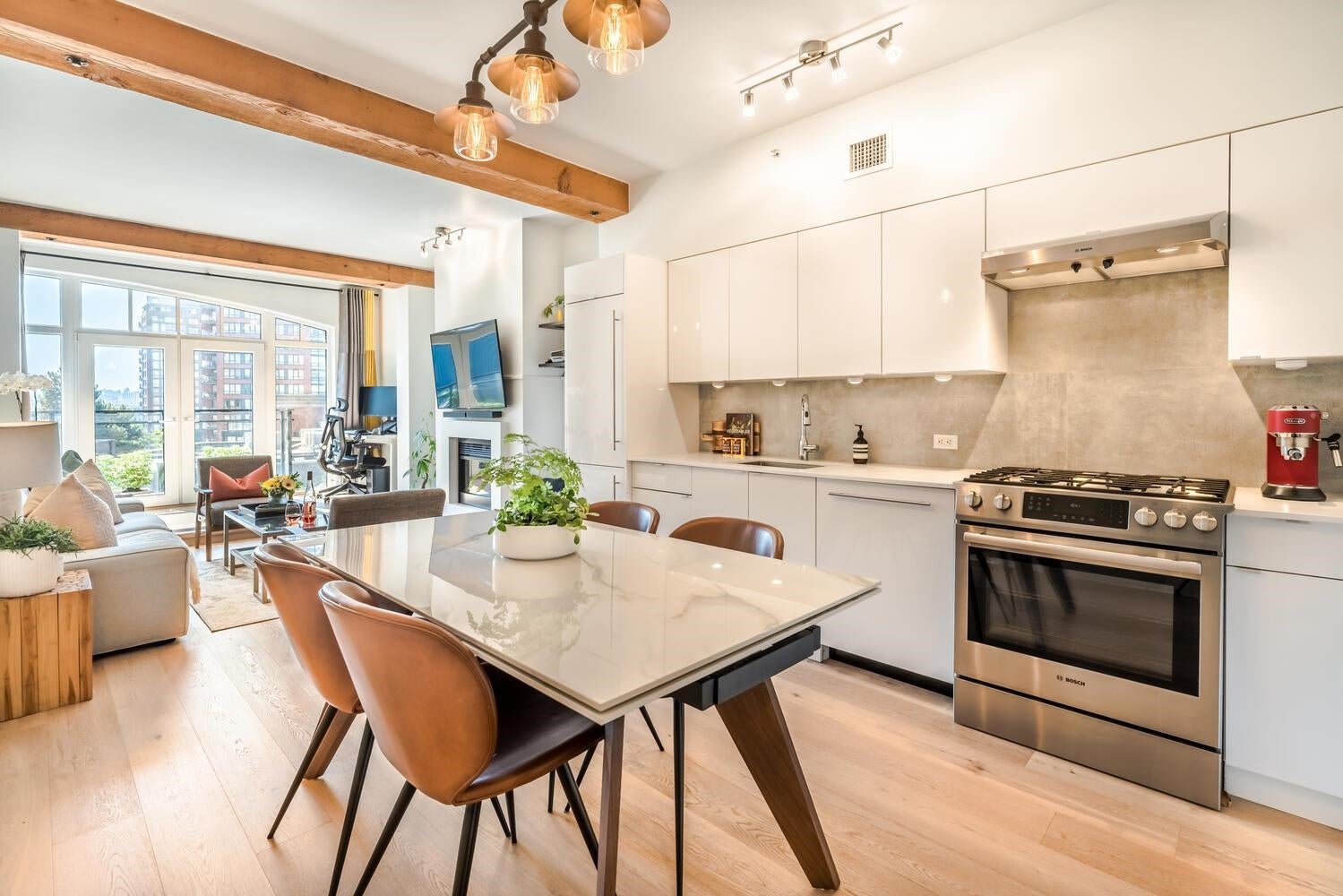 THE ULTIMATE IN LOFT LIVING! SPACIOUS OPEN FLOOR PLAN with AIR CONDITIONING. Welcome home to the esteemed ALDA. This beautifully updated 1 bdrm + den "purpose-built" loft is bright, spacious & meticulously maintained. Enjoy the exposed wood beams, over-height 9' ceilings, the updated kitchen with ample counter & storage space; integrated BOSCH appliances with a gas cook top stove. The tasteful, contemporary finishings include wide plank engineered hardwood flooring throughout the living & sleeping areas, high gloss cabinetry, natural stone countertops, elegant ceramic tiles and more! Incl. 1 pkg stall & 1 storage locker, (located on the same floor as the suite) PRIME LOCATION: Steps to shopping, dining, David Lam Park, Seawall & much more! Savour the best in YALETOWN LOFT LIVING!