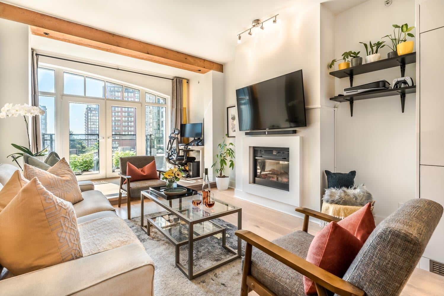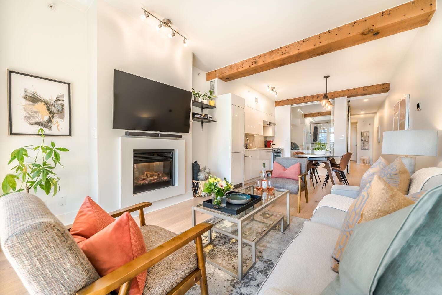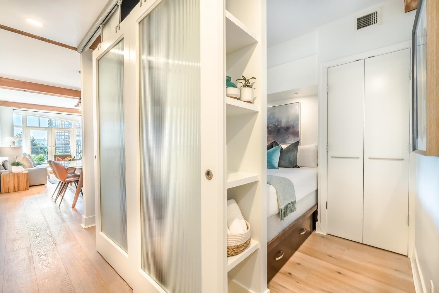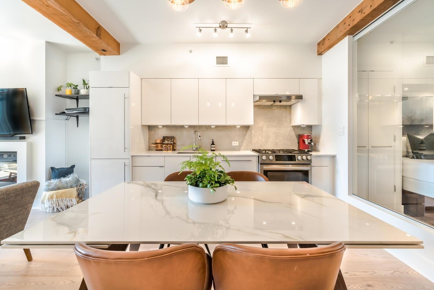THE ULTIMATE IN LOFT LIVING! SPACIOUS OPEN FLOOR PLAN with AIR CONDITIONING. Welcome home to the esteemed ALDA. This beautifully updated 1 bdrm + den "purpose-built" loft is bright, spacious & meticulously maintained. Enjoy the exposed wood beams, over-height 9' ceilings, the updated kitchen with ample counter & storage space; integrated BOSCH appliances with a gas cook top stove. The tasteful, contemporary finishings include wide plank engineered hardwood flooring throughout the living & sleeping areas, high gloss cabinetry, natural stone countertops, elegant ceramic tiles and more! Incl. 1 pkg stall & 1 storage locker, (located on the same floor as the suite) PRIME LOCATION: Steps to shopping, dining, David Lam Park, Seawall & much more! Savour the best in YALETOWN LOFT LIVING!