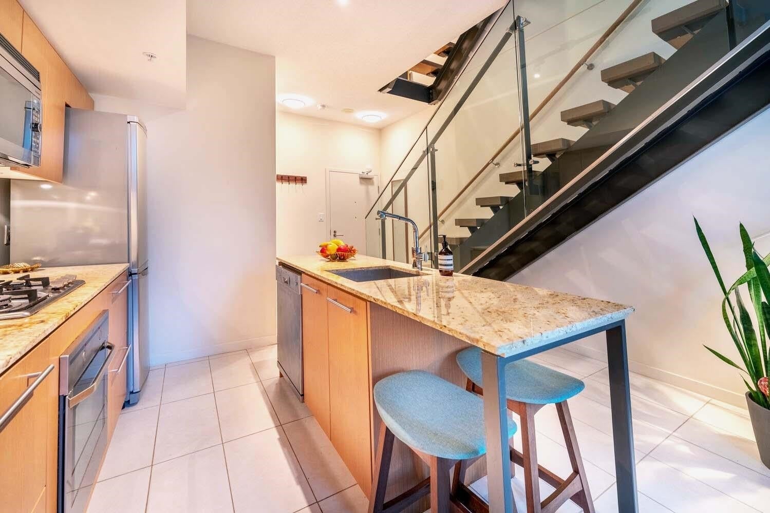 WAITING for lucky Buyer(s) is this light filled, 3 storey, "loft style" SECURE condo/townhome with NO ONE ABOVE YOU & with almost 10' ceilings & 2, large, amazing outdoor spaces-1 sun drenched! And you can bring your fur kid(s)! Ideally situated in one of the best locations in Vancouver where you can walk to shopping, the Canada Line, parks, Granville Island, False Creek seawall & more! Everything is close to your "doorstep" in this relaxing home. And there is more...stainless appliances inc. gas cooktop, new washer & dryer, updated powder room on the main to name a few outstanding features. The complex was built by the PCI Group, is LEED gold certified, with great amenities inc. a 3000+ sq. ft. gym, common area, rooftop garden, playground & bike room. BY APPOINTMENT ONLY Sat & Sun 2-4 pm