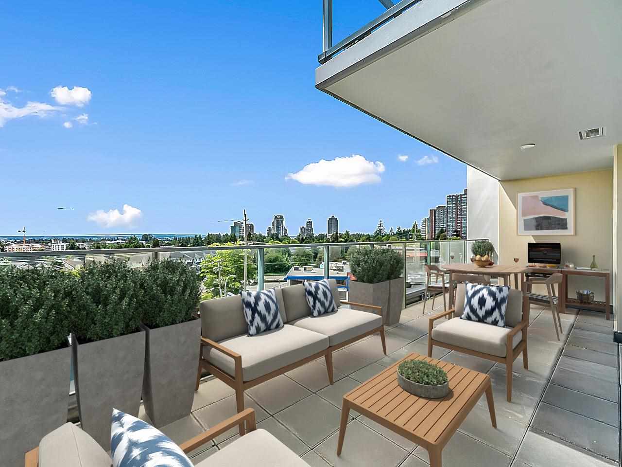 WATER & MTN. BAKER VIEWS from your private 385 sq. ft. deck-just a few outstanding features of this "new", stunning, home with A/C! A kitchen worthy of a gourmet chef inc. gas range with wok burner, built-ins: 2 fridges, 2 freezers, wall oven, lots of cupboard & counter-space, high-end appliances & the list goes on!! Perfect 2 bdrm layout! Kings Crossing 1 (built by Cressey) is sought after & walking distance to a farmer's market, shopping, community centre etc. And it takes resort living building amenities to another level inc. concierge, outdoor theatre, basketball court, squash court, steam/sauna, 2 storey gym, amazing club house/party room overlooking roof top gardens etc. Checks all the boxes! CoVid protocols in place. A pleasure to show...By APPOINTMENT ONLY