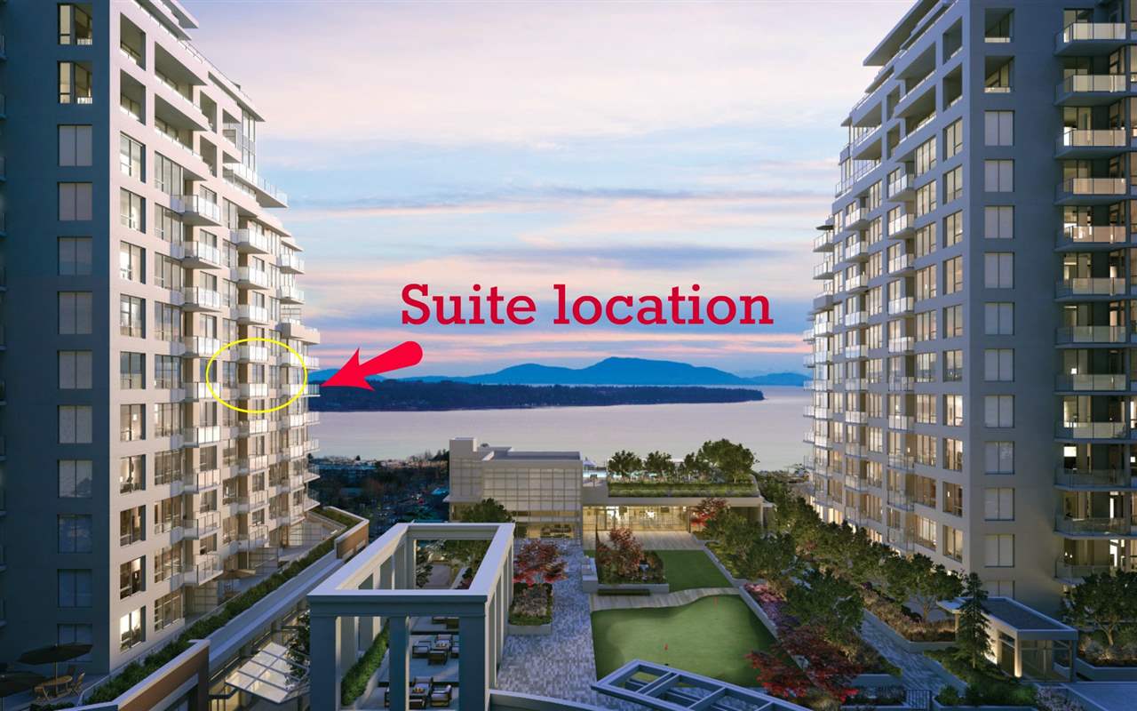 Assignment Sale!! ANT. COMPLETION DEC. 2020. 892 sqft interior + 85 sqft balcony - TOTAL 977 sqft of luxurious living space. 2 bdrm, 2 bath, contemporary finishes, southwest exposure (with ocean and sunset views). Includes 2 parking and 1 storage locker. This is your chance to purchase a contemporary, luxury sky home in desirable White Rock. Centrally located! Transit, wonderful shops & restaurants are only steps away. World Class Amenities: Full-time concierge, outdoor pool deck w/hot tub that offers a breath taking view of the sea beyond, golf putting green, outdoor dining area with bbq, fire pit and seating, indoor fitness centre, a private residents lounge with fireplace & kitchen. Canine patio. NOTE: images shown may not represent the suite but do represent the Development.