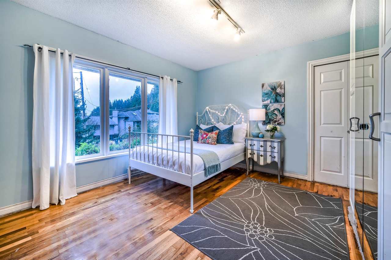 An OUTSTANDING opportunity in Upper Lynn Valley with Mtn. & Valley views! Located in a great neighbourhood close to excellent schools! This 4 bedroom, 3 bath home with an updated kitchen, has a stunning custom river rock f/p with gas insert, original oak hardwood floors, bdrms separate from the living area which leads to a lovely 348 sq. ft. view deck. The master bdrm is large with a w/i closet & ensuite complete with a large soaker tub. Furnace is only 5 years old, newer hot water tank, built-in vacuum with attachments etc. Some other upgrades. This home would be perfect for a a young family. Or hold and rent out prior to building to suit. Priced sharp accordingly! CoVid protocols in place.