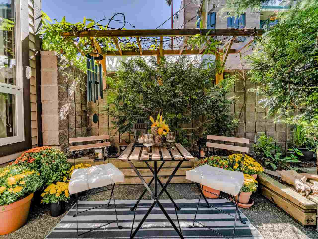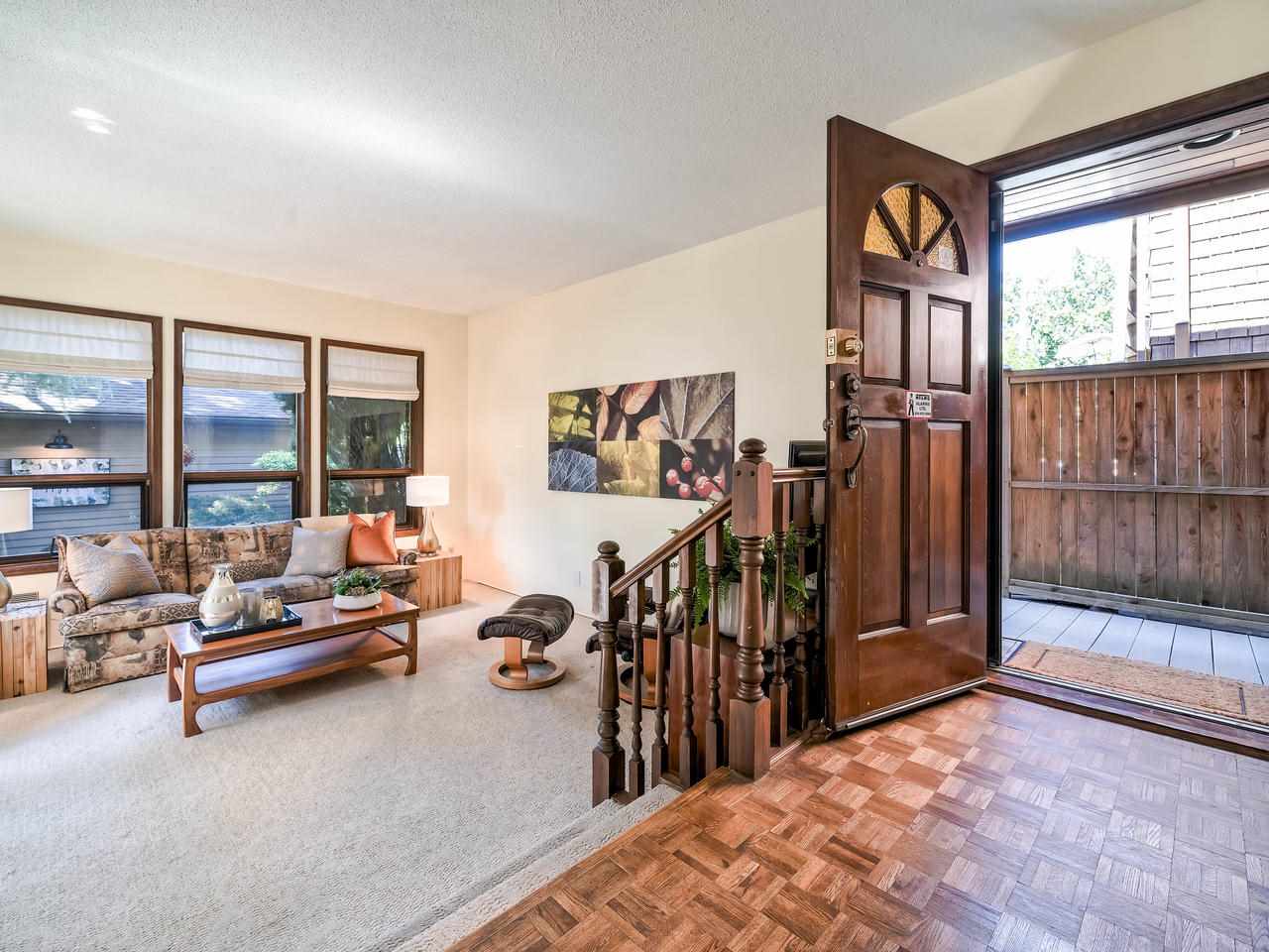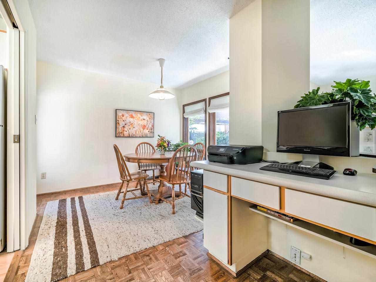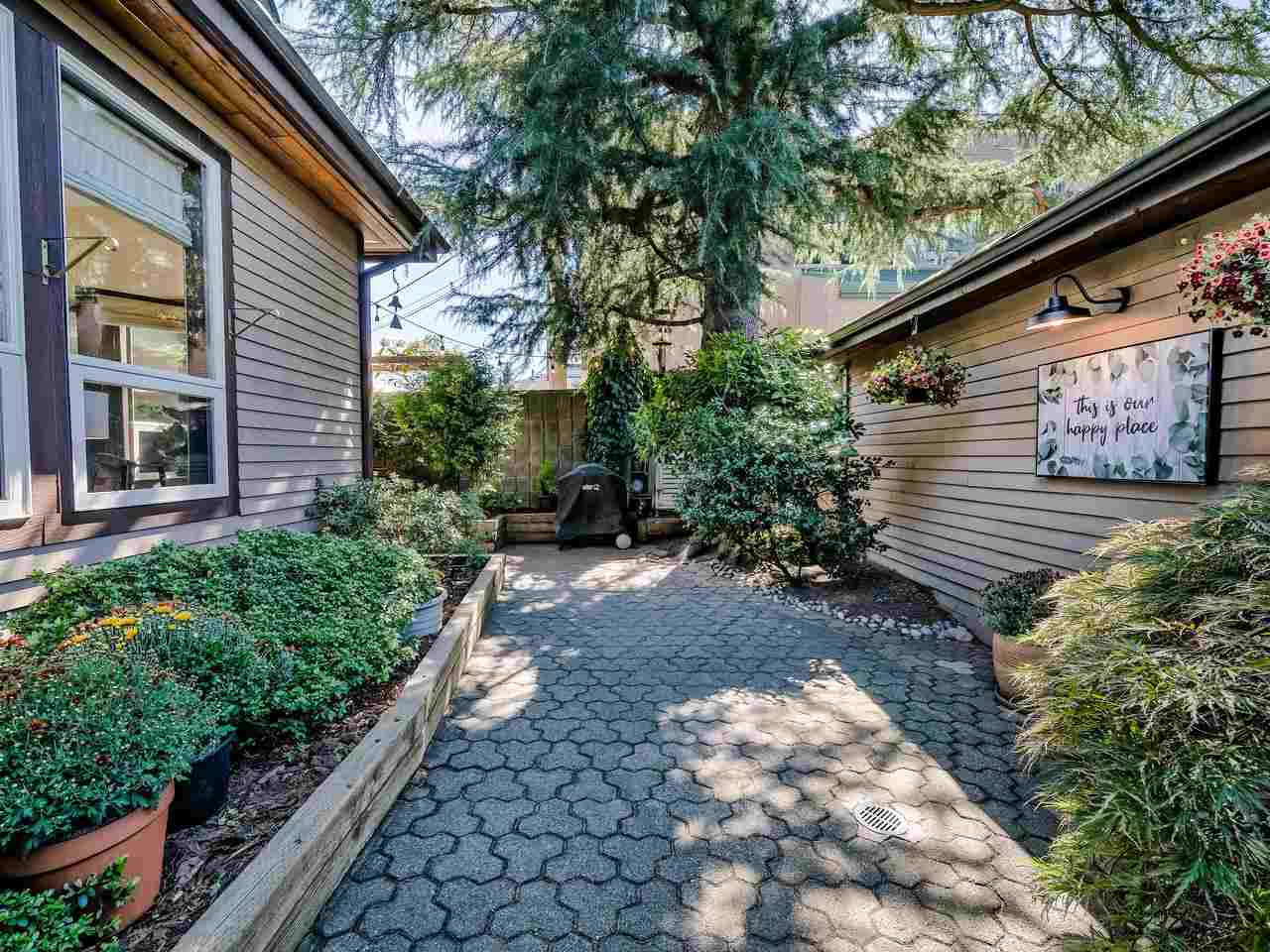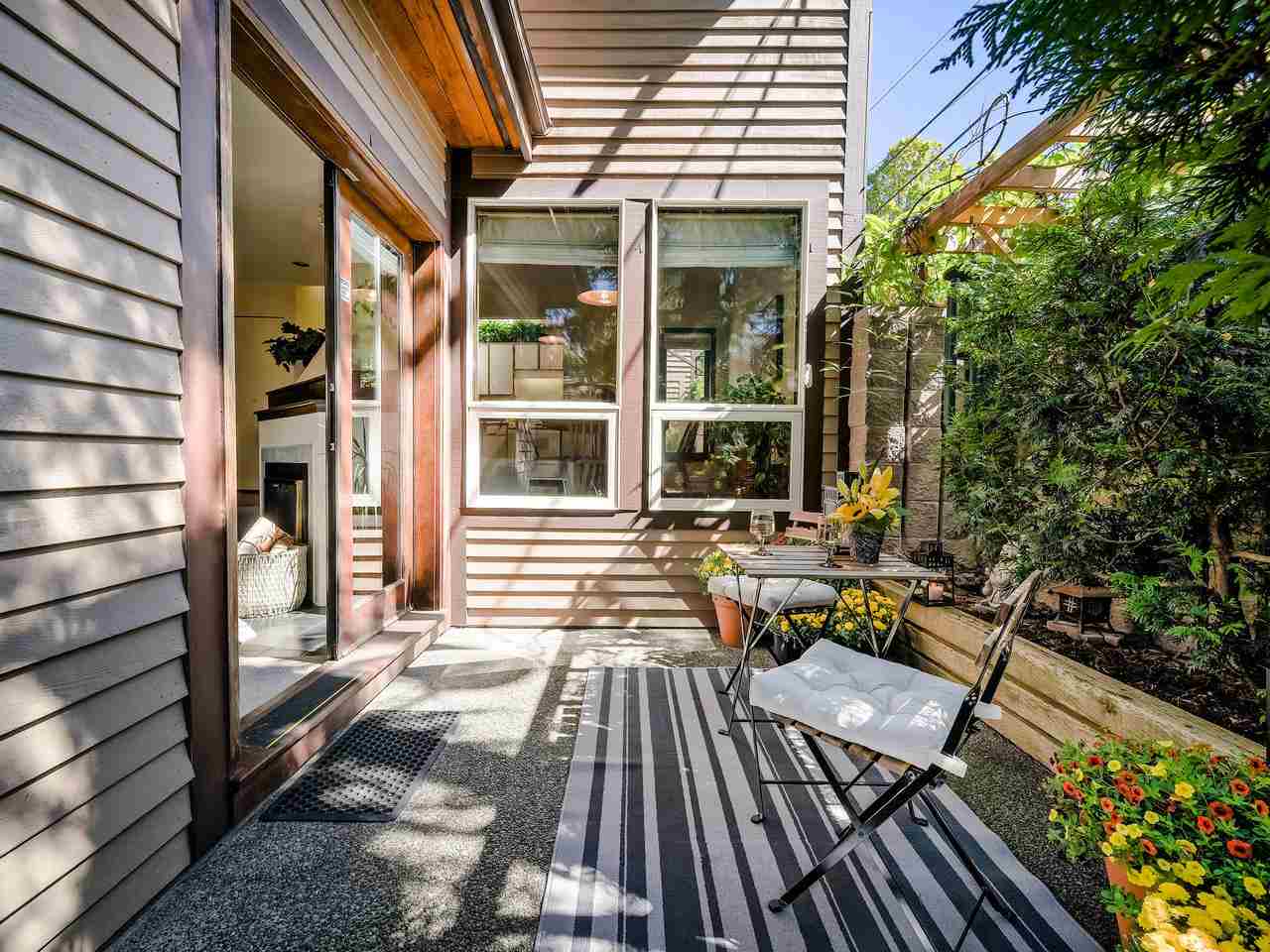 Fantastic Kits location! A wonderful, well cared for, light-filled, home to put your feet up! Stunning living room with high ceilings & wood burning f/p leading out to a gorgeous private, fenced, landscaped patio to have your morning coffee or a glass of wine. Kitchen has high ceilings with skylight & is well appointed. The dining room can easily accommodate entertaining friends and family. Built-in office area & powder room is conveniently on the main floor. Generous "king-size" master bdrm with a wall of closets & cheater ensuite. 2nd bdrm can accommodate a queen bed + 25' x 12'-clean, dry, very USABLE crawl space ! Lots of storage in this home inc. a good-size 1-car garage with more storage! Other prkg. available. No monthly fees! An opportunity!