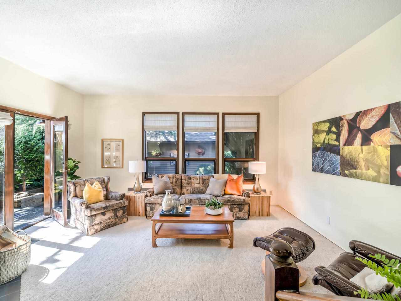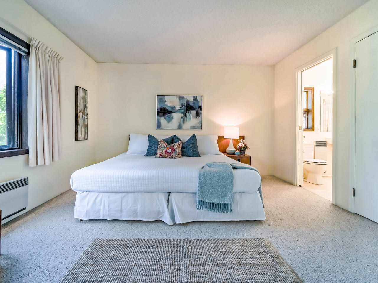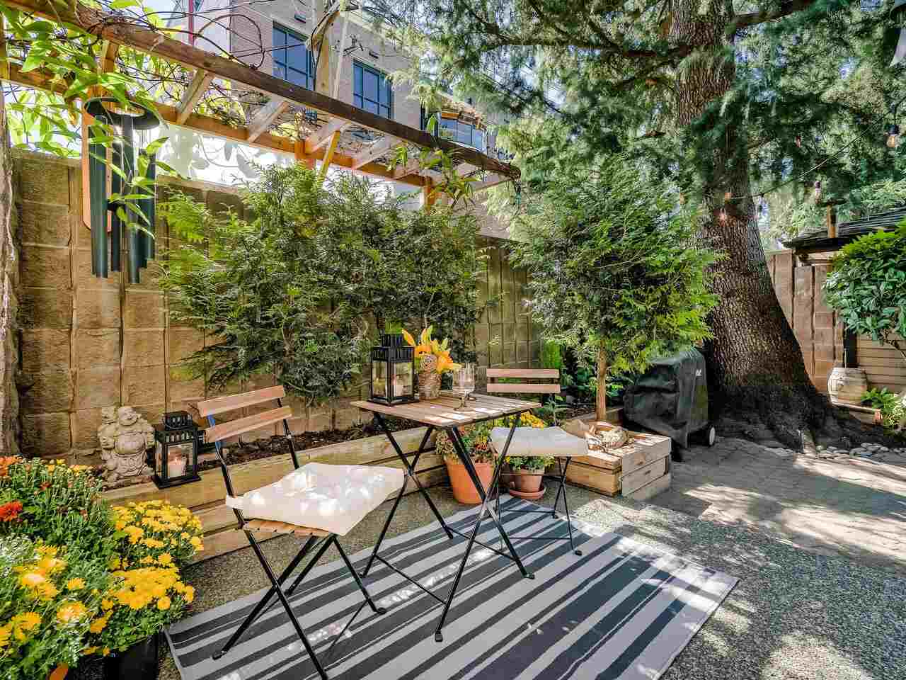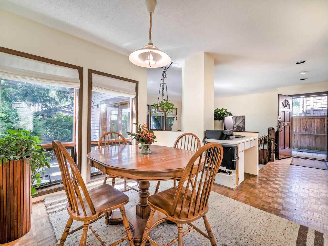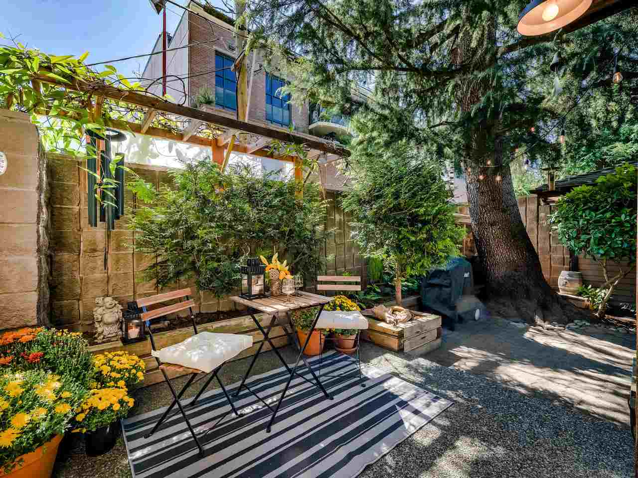 Fantastic Kits location! A wonderful, well cared for, light-filled, home to put your feet up! Stunning living room with high ceilings & wood burning f/p leading out to a gorgeous private, fenced, landscaped patio to have your morning coffee or a glass of wine. Kitchen has high ceilings with skylight & is well appointed. The dining room can easily accommodate entertaining friends and family. Built-in office area & powder room is conveniently on the main floor. Generous "king-size" master bdrm with a wall of closets & cheater ensuite. 2nd bdrm can accommodate a queen bed + 25' x 12'-clean, dry, very USABLE crawl space ! Lots of storage in this home inc. a good-size 1-car garage with more storage! Other prkg. available. No monthly fees! An opportunity!