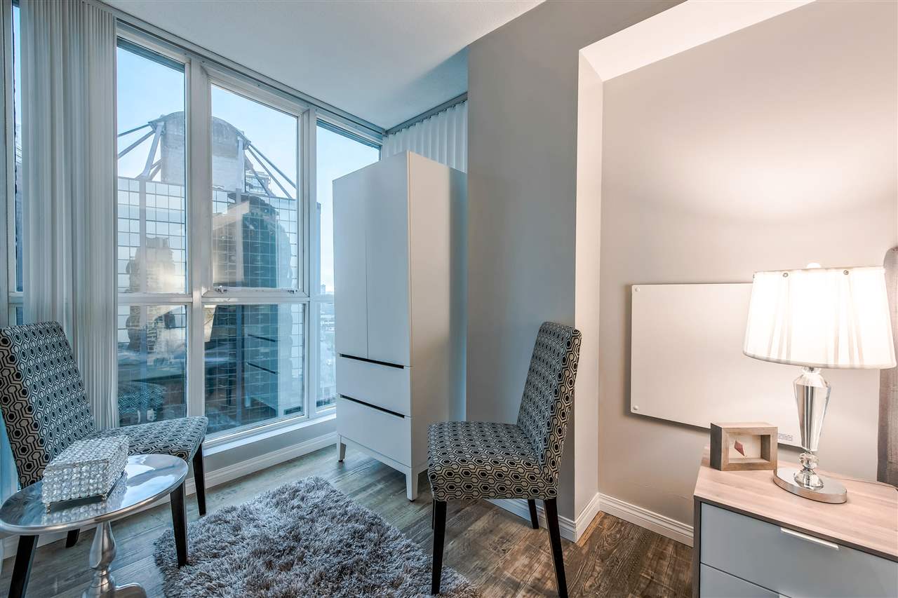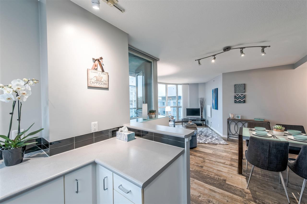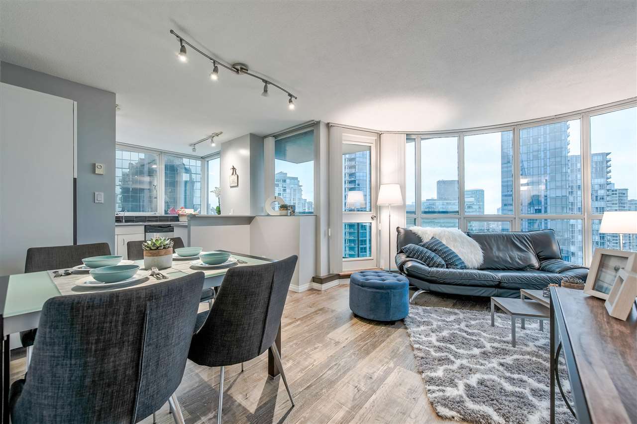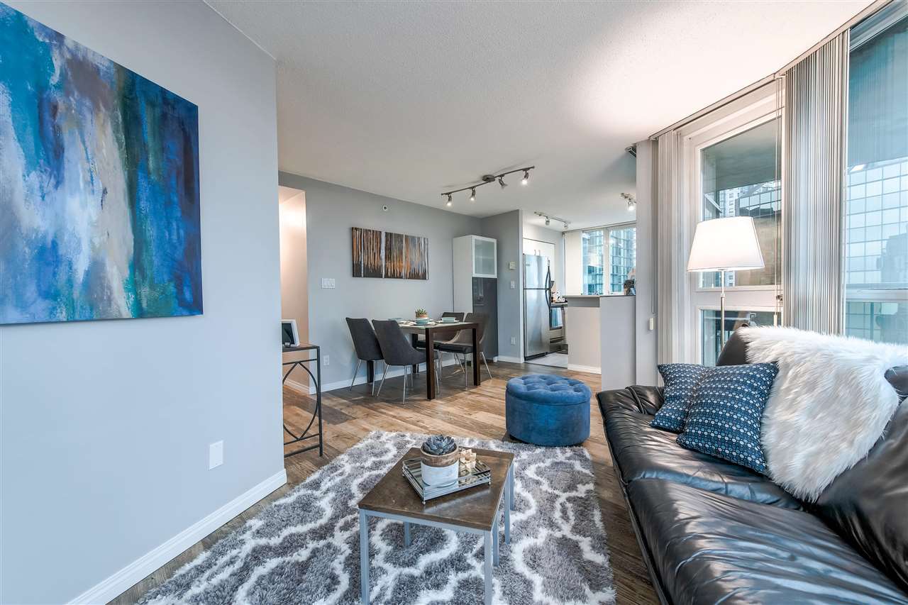 FANTASTIC LOCATION in Coal Harbour! This luxurious, bright, 1 bdrm with den/office area has an OUTDOOR BALCONY with OCEAN & MOUNTAIN VIEWS! The best price per square foot in Coal Harbour! The location is second to none being steps to the seawall & only 2 blocks to famed Robson Street, Stanley Park, marina, gourmet restaurants and all downtown amenities are walking distance. Best location in Vancouver - the Platinum Mile. Great layout with circular floor to ceiling windows in LR. Renovated with attention to detail inc. stainless steel appliances etc. Full amenities including indoor pool, fitness center, movie theatre, billiard room, party & meeting rooms. Gorgeous Designer furniture negotiable. Bring your fur baby! Rentals allowed. 1 prkg. + other avail. open house Sun 2-4 pm.