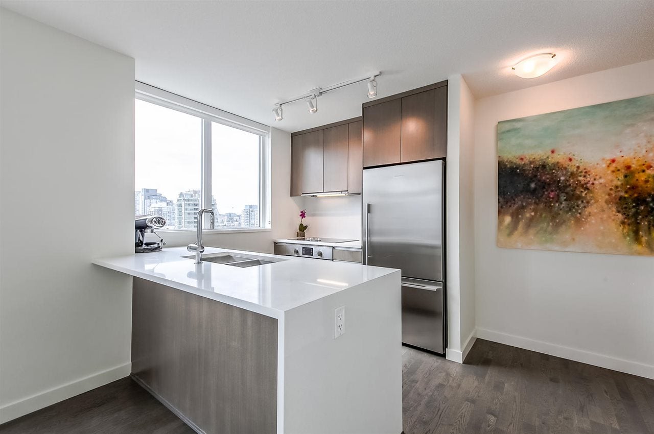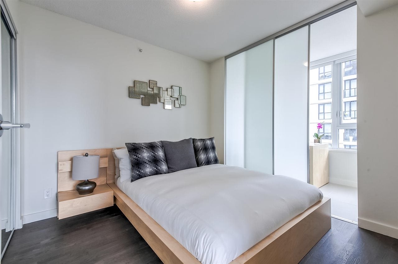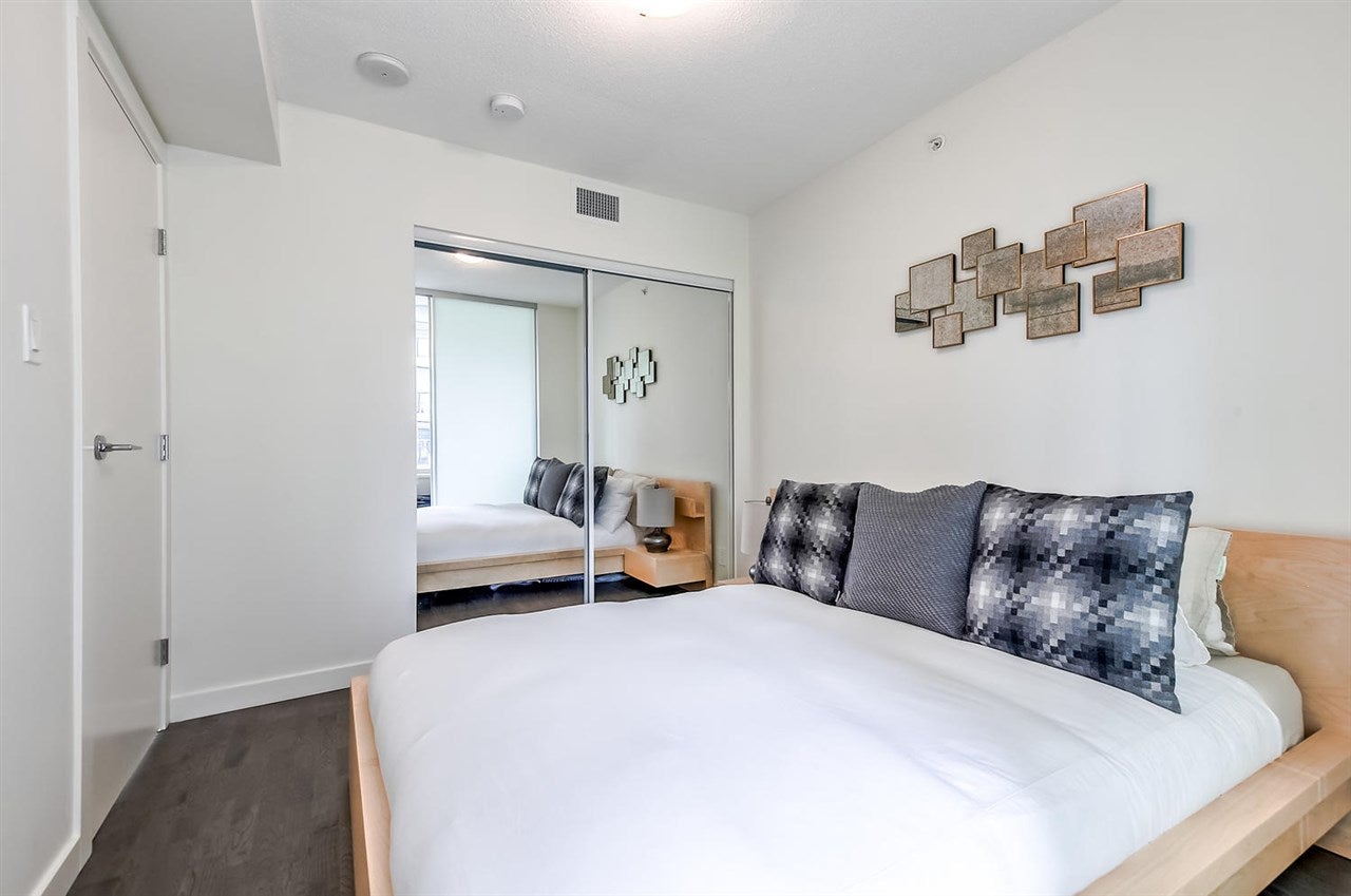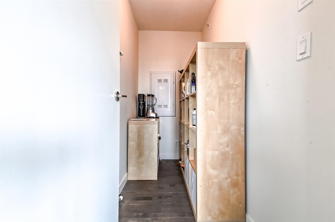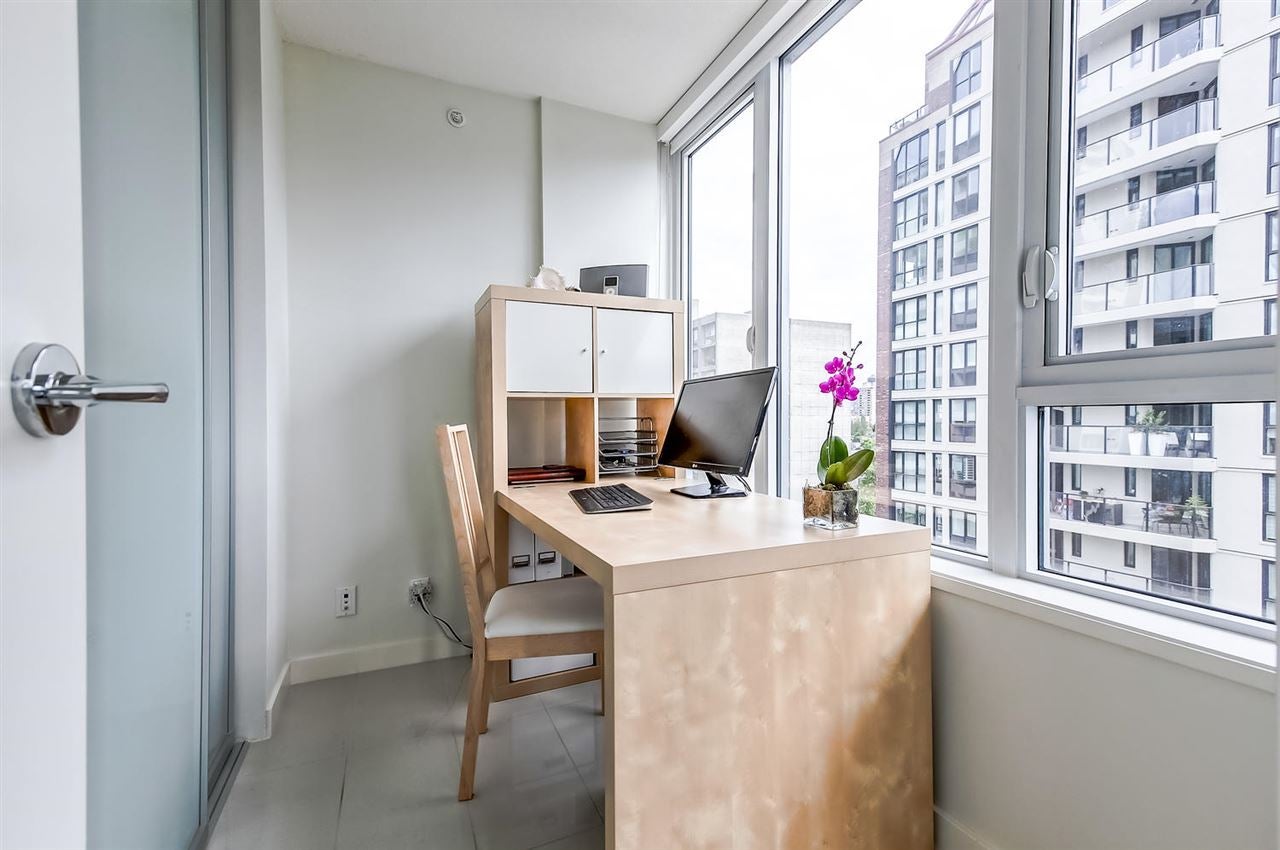 VERY RARE!! MODERN, BRIGHT. "LOVINGLY MAINTAINED" SPACIOUS-CORNER SUITE. This beautifully appointed 1 bed + den + flex space suite is truly unique!! The wonderful floor plan makes gracious living easy while its air conditioning, quality laminate flooring and many windows ensures a bright and comfortable home. The dream kitchen offers a large window, natural stone counter tops, quality stainless steel Bosch and Fisher Paykel appliances and PLENTY OF SPACE. Entertain friends & family in the large open concept living area or enjoy the city and water views, BBQ and a glass of wine on the balcony. Need more space? This suite offers more! The den w/window & a useful flex space offer possibilities++!! Includes 1 pkg & storage locker.