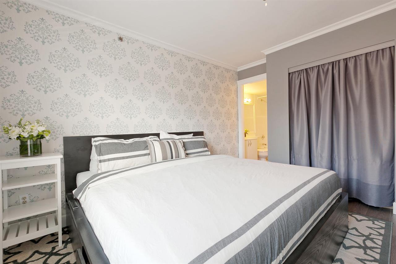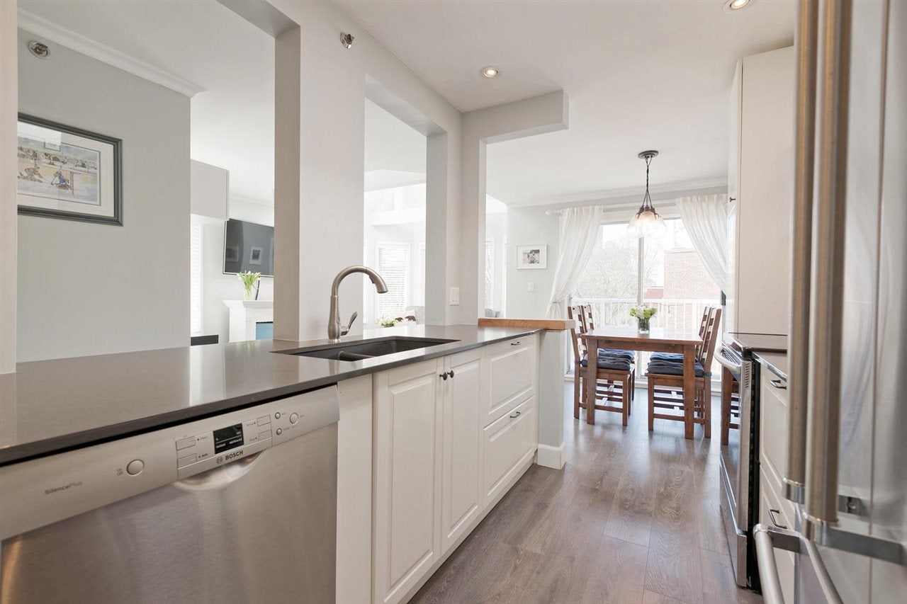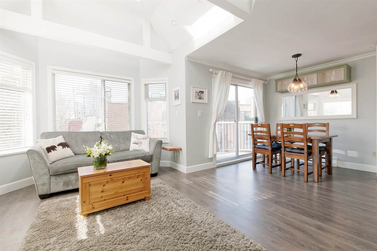 Bright, top floor PENTHOUSE, 2 bdrm, 2 bath, corner unit with VAULTED ceilings with views overlooking lovely Nelson Park! Beautifully renovated by the CURRENT owners with quality wide-plank laminate floors, vaulted ceiling details, new open concept kitchen with S/S appliances, new crown & baseboard mouldings, etc. Bdrms separate, master w/ensuite. Insuite laundry, 2 great side by side parking spots + storage + bike storage. Excellent building, re-plumbed, fully rainscreened in 2001 etc. plus new roof & skylights in 2017. Very quiet neighbourhood in the famous WEST END. Farmer's Market across Nelson Park. Dog run & community Gardens. 2 pets & rentals ok. Ask LS. Stroll to BEACHES to watch the sunsets! Open Sat/Sun April 7/8 2-4 pm https://tours.bcfloorplans.com/public/vtour