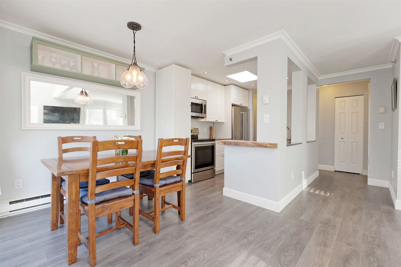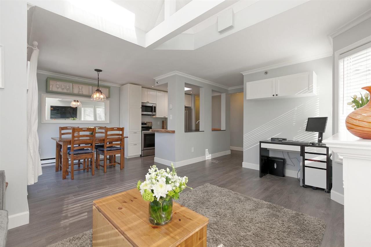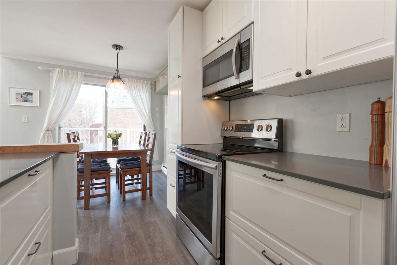 Bright, top floor PENTHOUSE, 2 bdrm, 2 bath, corner unit with VAULTED ceilings with views overlooking lovely Nelson Park! Beautifully renovated by the CURRENT owners with quality wide-plank laminate floors, vaulted ceiling details, new open concept kitchen with S/S appliances, new crown & baseboard mouldings, etc. Bdrms separate, master w/ensuite. Insuite laundry, 2 great side by side parking spots + storage + bike storage. Excellent building, re-plumbed, fully rainscreened in 2001 etc. plus new roof & skylights in 2017. Very quiet neighbourhood in the famous WEST END. Farmer's Market across Nelson Park. Dog run & community Gardens. 2 pets & rentals ok. Ask LS. Stroll to BEACHES to watch the sunsets! Open Sat/Sun April 7/8 2-4 pm https://tours.bcfloorplans.com/public/vtour