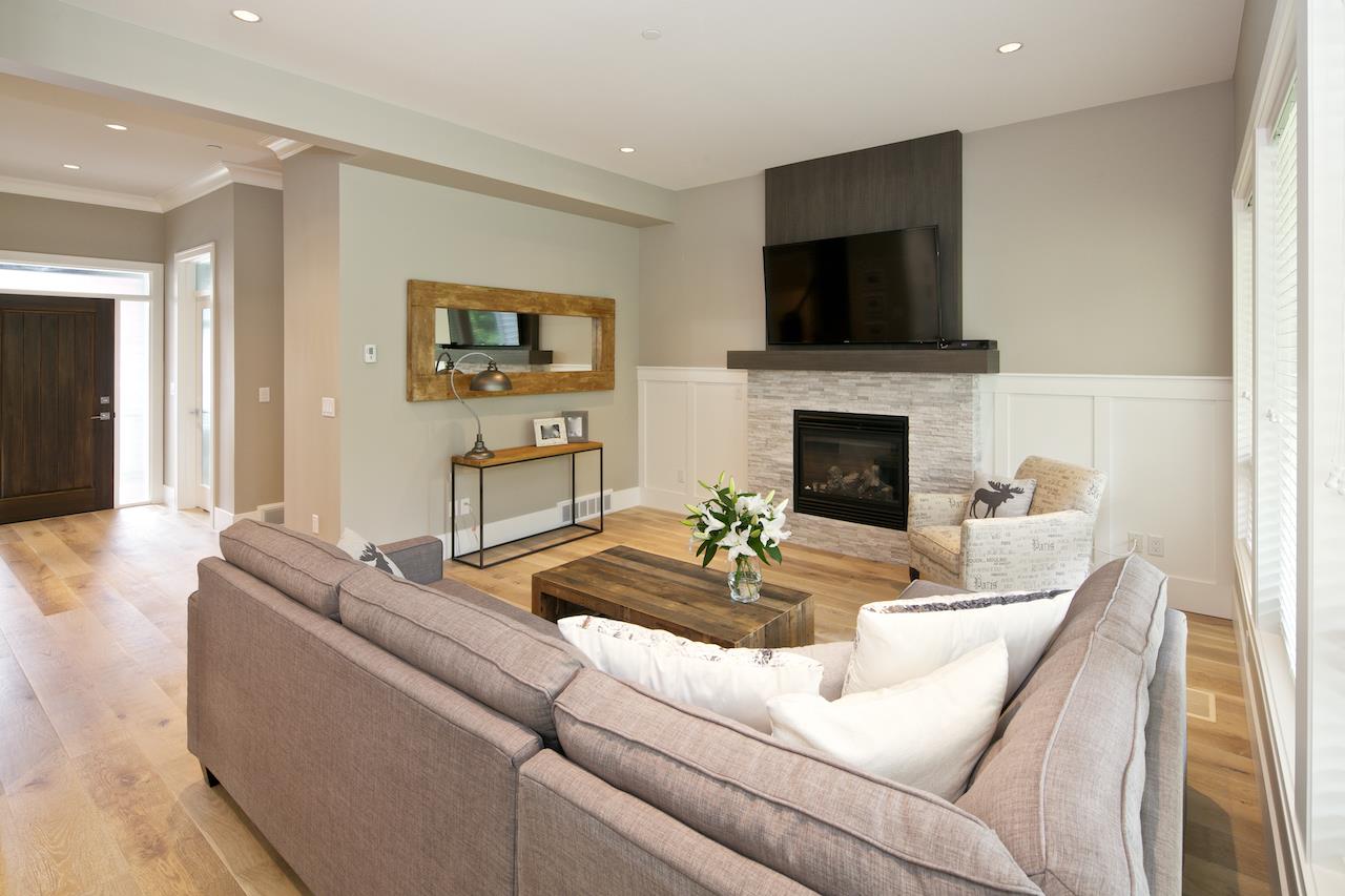 A rare gem! This bright 4 bdrm (easily 5 or 6) & 5 bath open-concept home ticks all the boxes! Pride of workmanship is evident the moment you enter. Wide plank hardwood floors, custom cabinets, quartz countertops, large great room & kitchen, 12' ceilings. Watch little ones play in the fenced S. facing yard backing onto a greenbelt from your kitchen! No deck rail to fall over! Curl up by the FP for romantic evening & exhale! Master suite retreat features a spa inspired ensuite & large walk-in closet. Daylight basmt. features rec. room with floor to ceiling FP, wood beams, Den / TV room, gym room, storage & powder room with staking laundry. Easy to suite, large full height garage & 2 spots. 2-5-10 New Home Warranty.